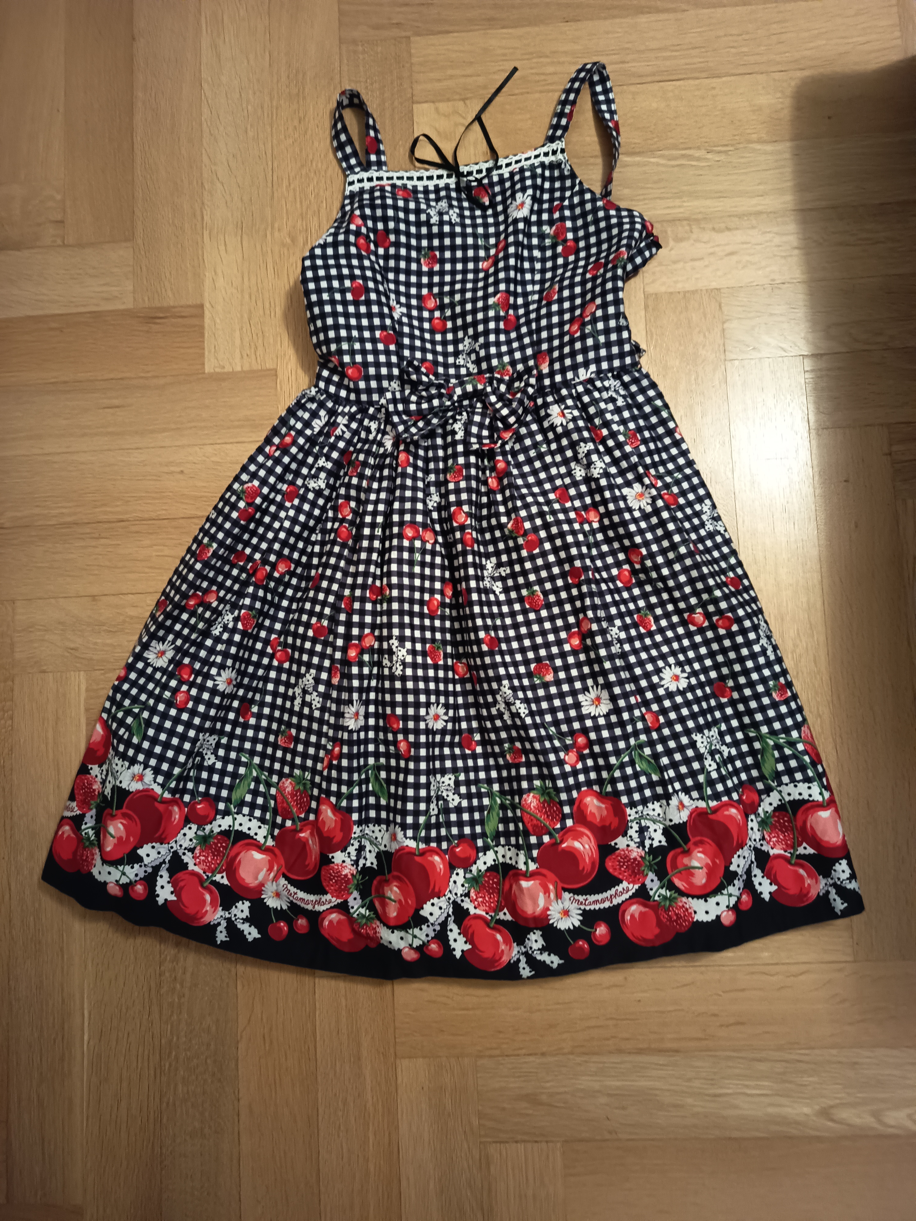 I really love cherries and I wanted to get more cherry prints at that time. I feel like I could love this piece more, I've even considered selling it but it looks great on me. I'm searching for the matching accessories, especially the mini hat.